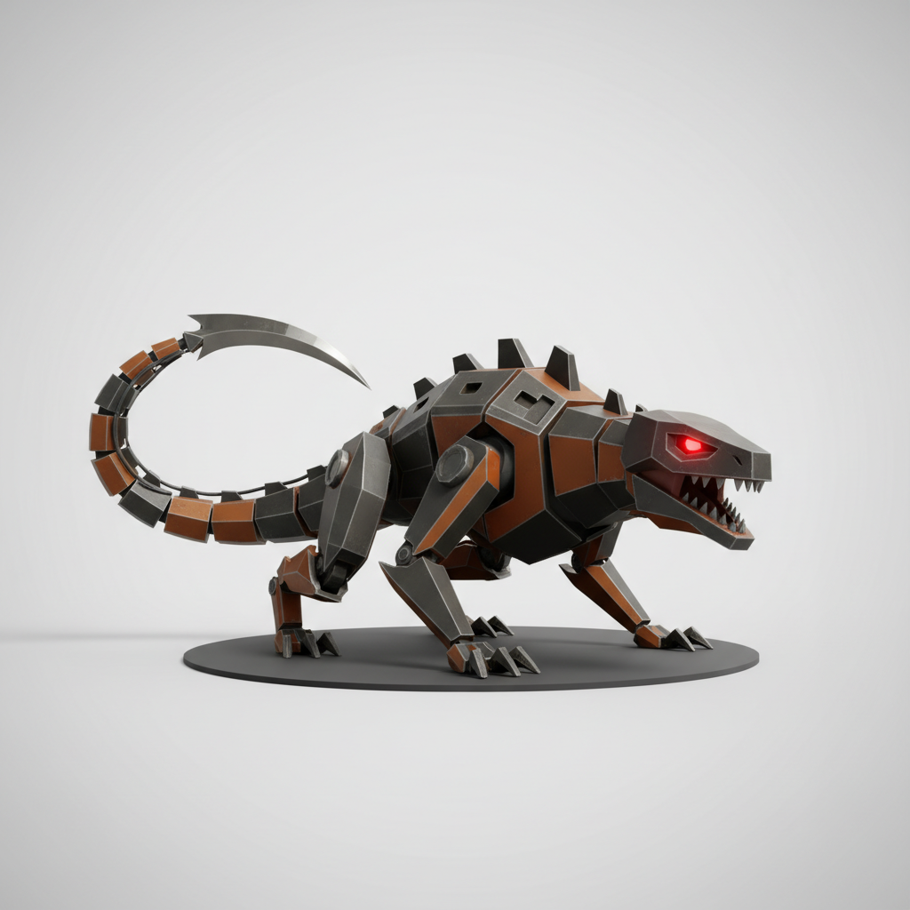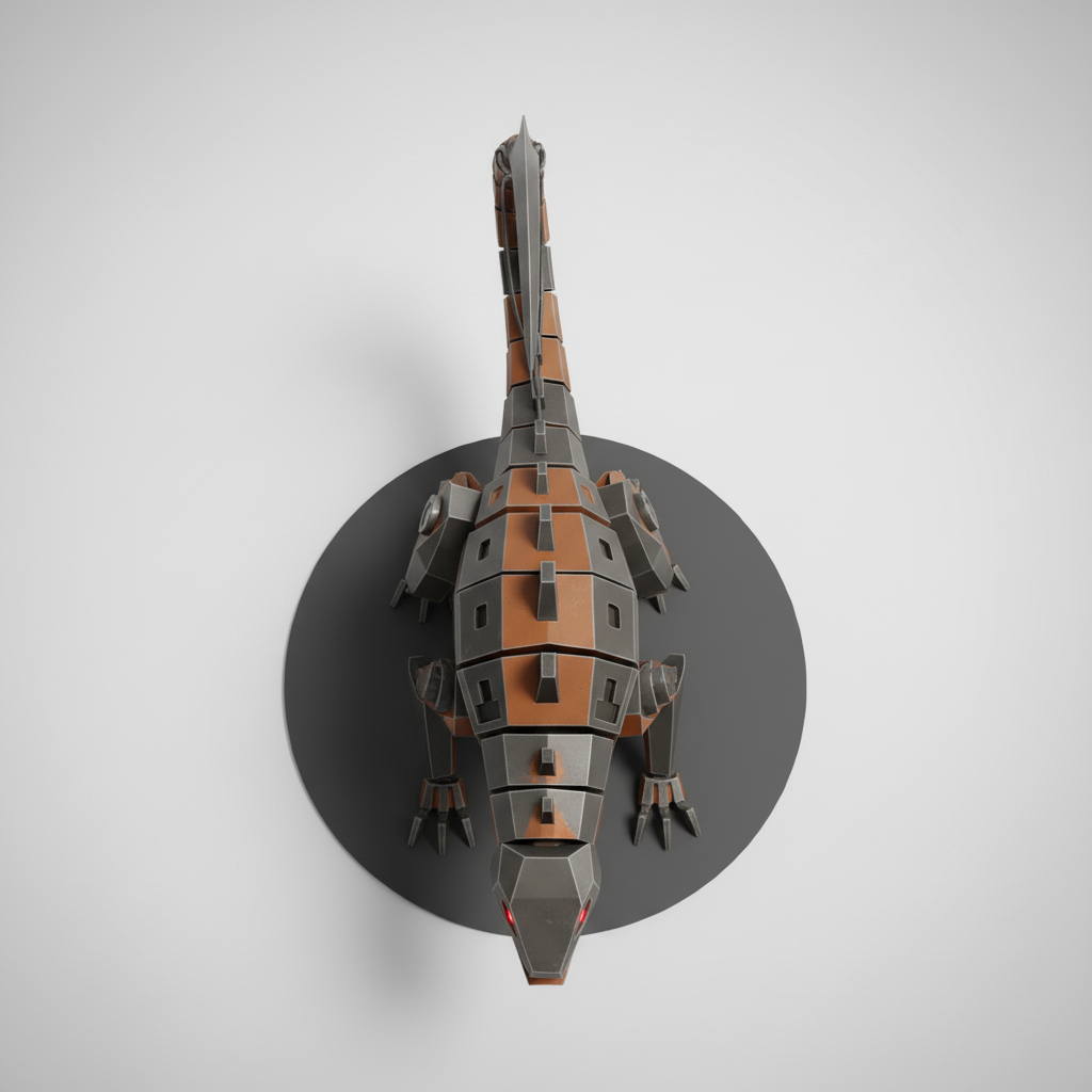 Robotic lizard or alligator model. sharp edges, complex geometry, game-ready, symmetric geometry.