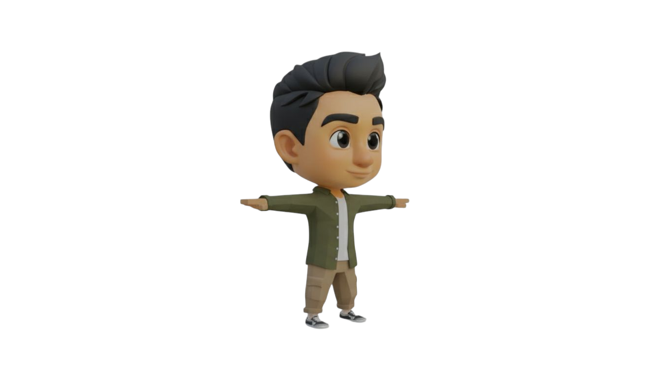 Stylized male character in casual clothing. smooth edges, simple geometry, game-ready, character, symmetric geometry.