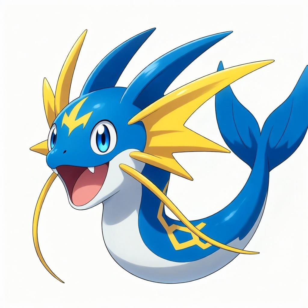 Blue and yellow aquatic dragon character. sharp edges, complex geometry, game-ready, character, symmetric geometry.