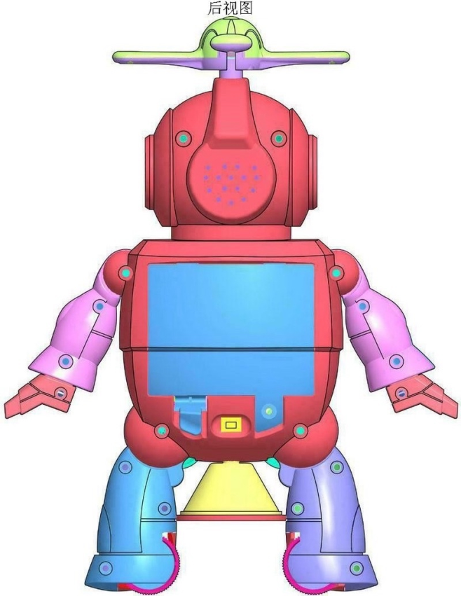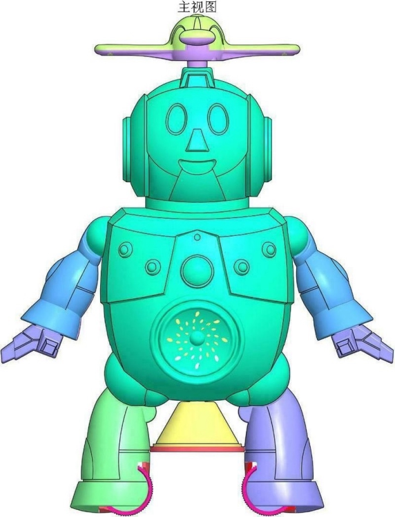 Cartoon robot with propeller head. sharp edges, smooth edges, complex geometry, game-ready, character, symmetric geometry.