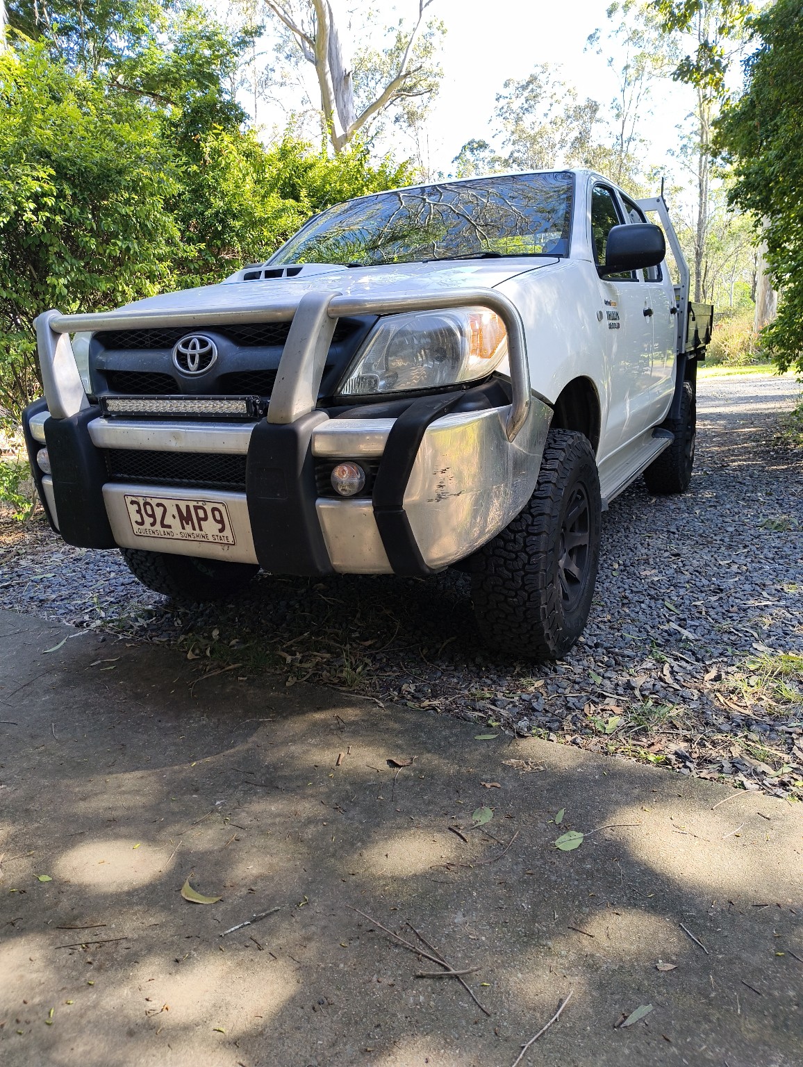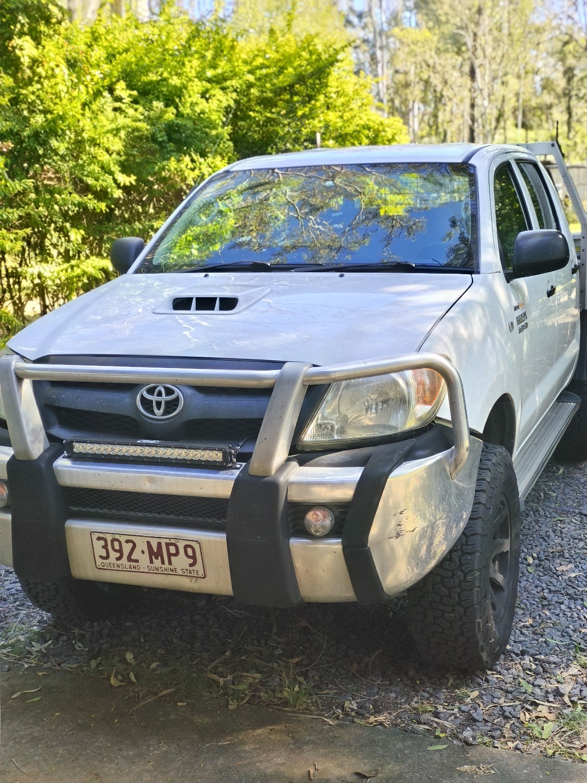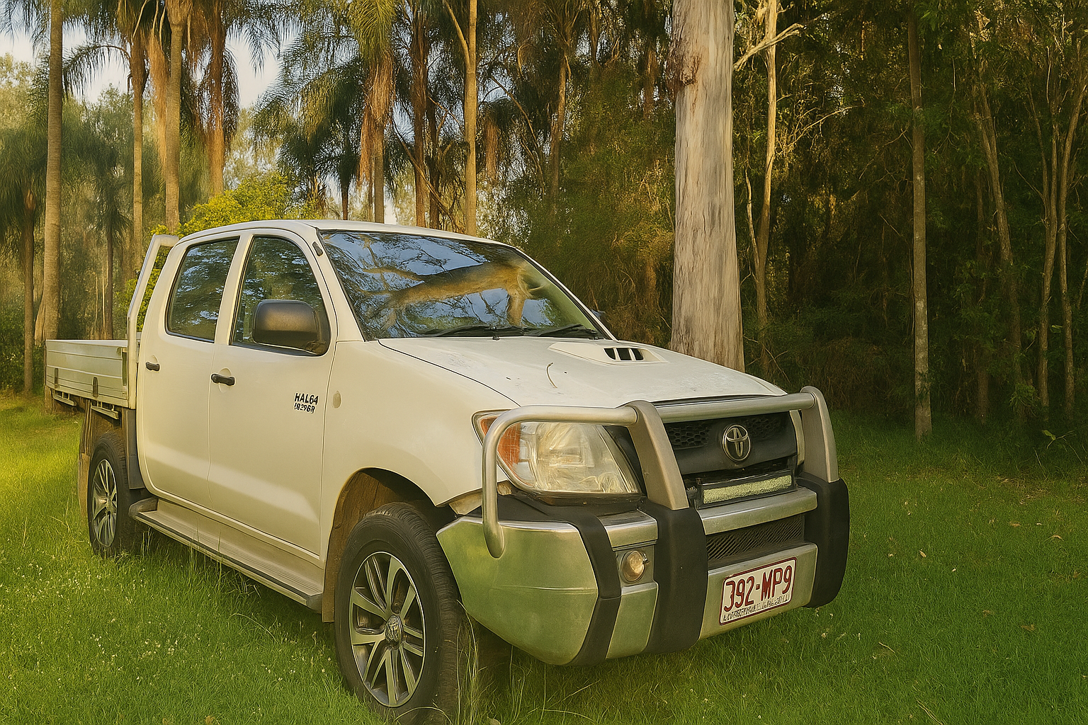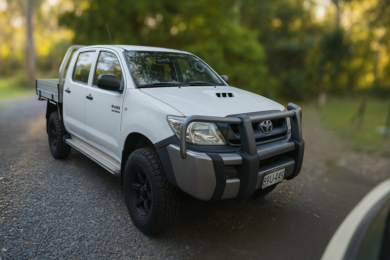 white Toyota pickup truck. complex geometry, sharp edges, symmetric geometry.