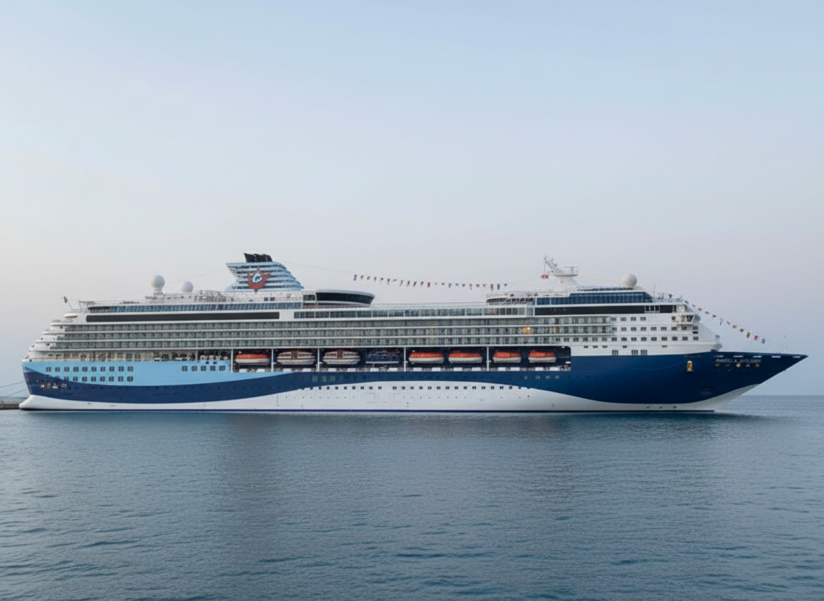 Large cruise ship docked at port. smooth edges, complex geometry, symmetric geometry.