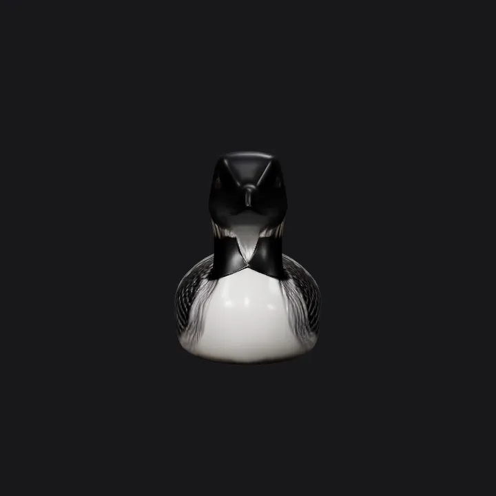 Wooden bird decoy resembling a loon. smooth edges, simple geometry, symmetric geometry.