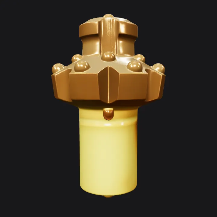 gold-colored industrial drill bit. sharp edges, complex geometry, symmetric geometry.