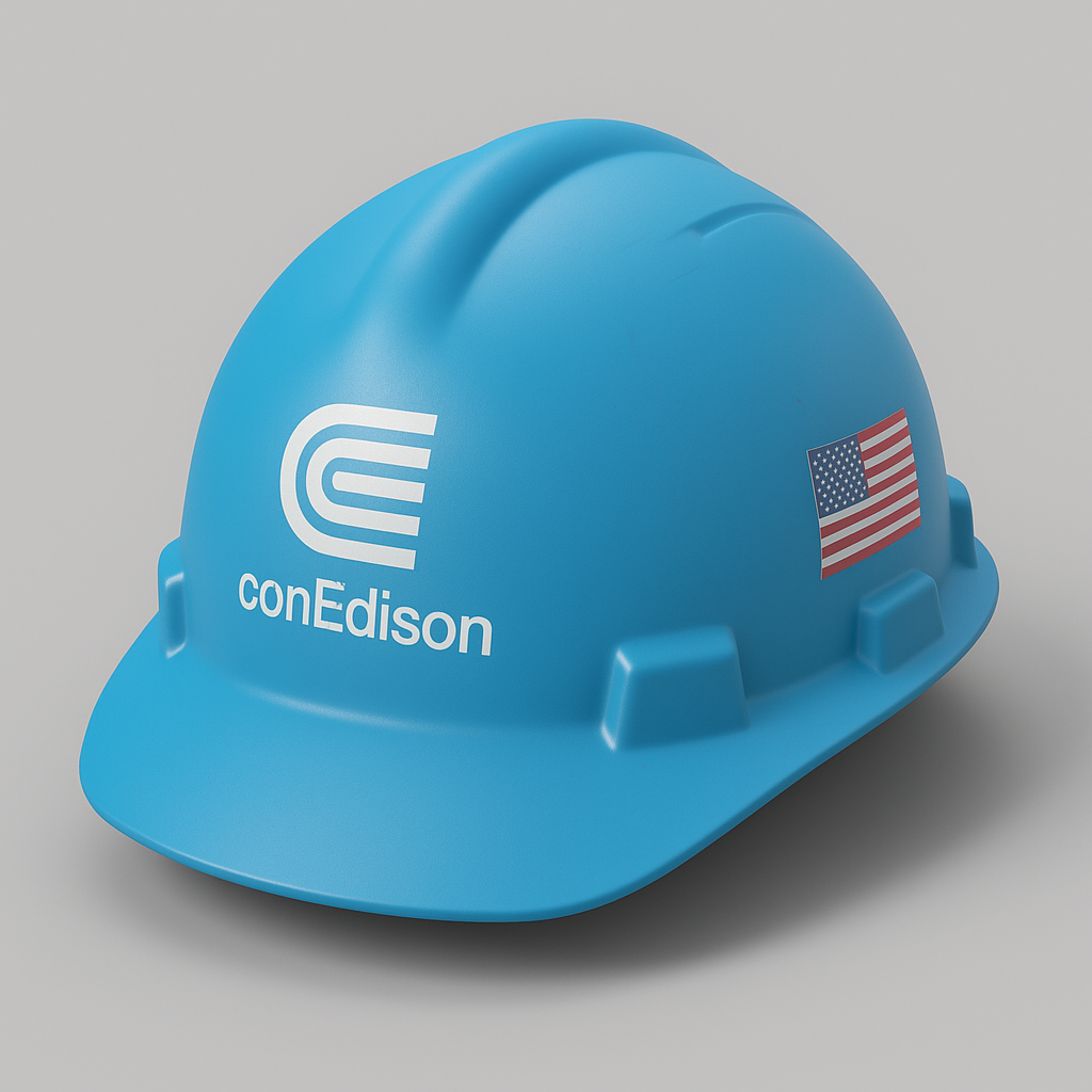 blue construction hard hat with logos. smooth edges, simple geometry, game-ready, symmetric geometry.