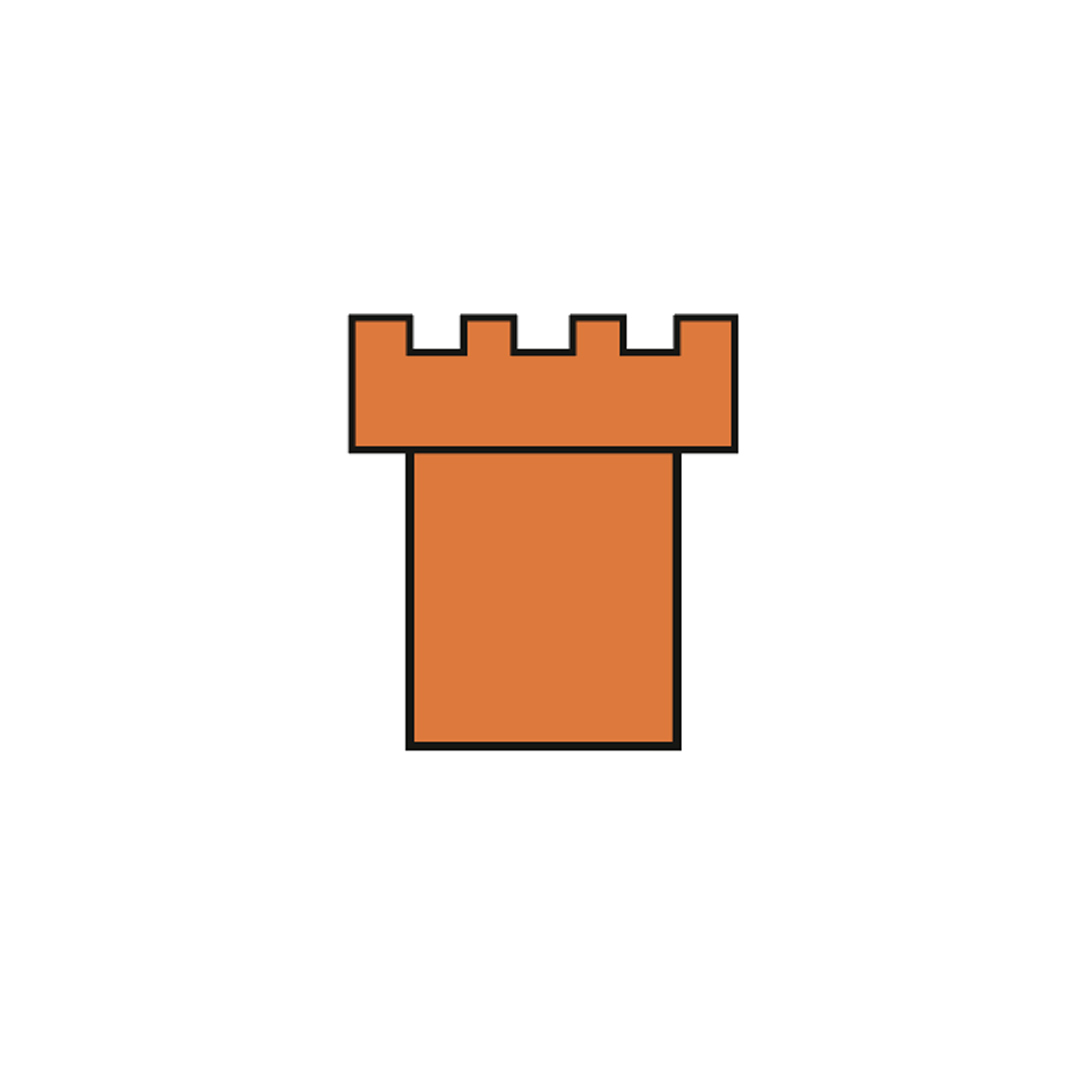Chess rook piece icon. sharp edges, simple geometry, game-ready, symmetric geometry.