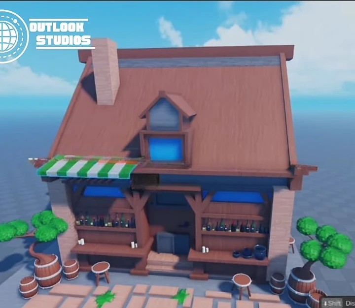 Cartoon-style tavern building exterior. sharp edges, smooth edges, complex geometry, game-ready, symmetric geometry.