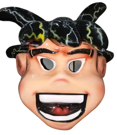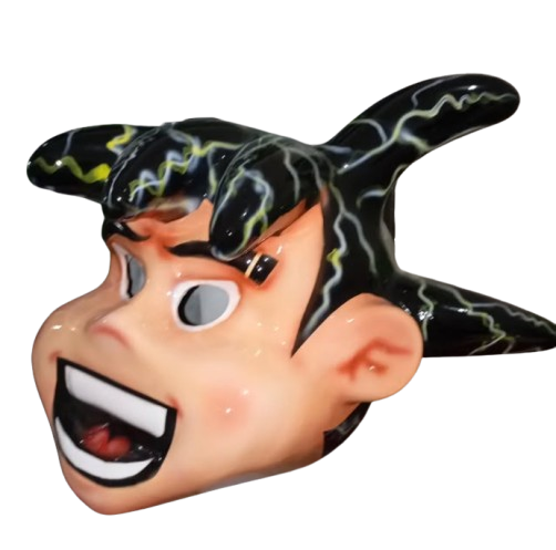 Black and yellow jester hat with ear. smooth edges, complex geometry.