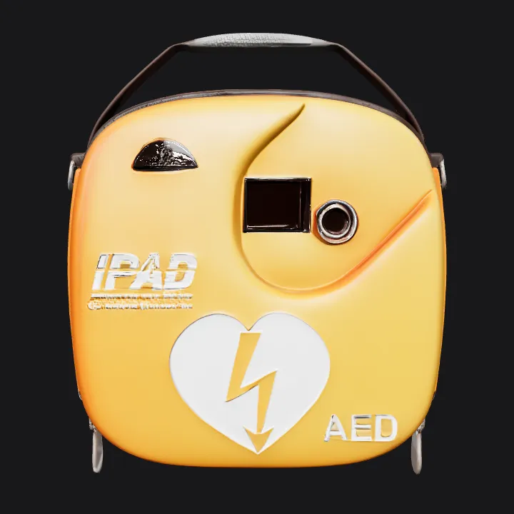 Portable AED defibrillator case. smooth edges, simple geometry, symmetric geometry.