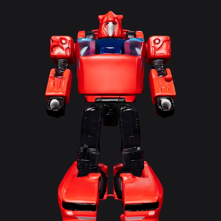 Red and black robot toy figure. sharp edges, complex geometry, game-ready, character.